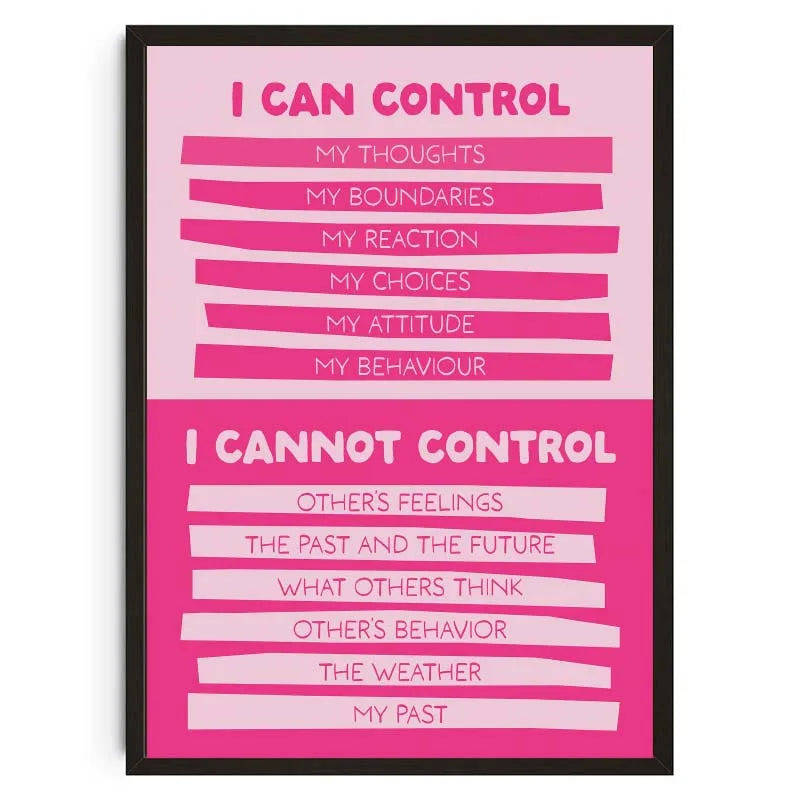 Cette affiche propose une distinction claire entre ce que vous pouvez contrôler et ce qui vous échappe, un rappel précieux pour avancer avec confiance, surtout dans un monde où la communauté LGBTQIA+ fait encore face à des pressions externes. En affirmant ce qui dépend de vous — vos idées, vos limites, vos choix — elle encourage une présence affirmée et soutenue par la force collective. C’est une manière simple et visuelle de nourrir votre résilience, tout en cultivant un sentiment d’unité et de sécurité intérieure.