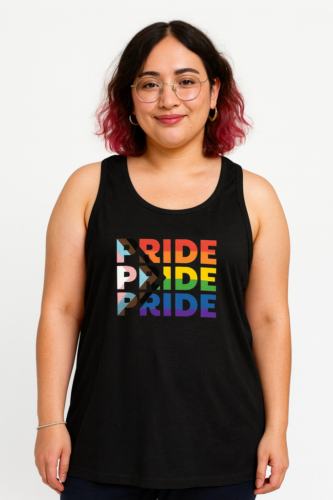 Chaque couleur du motif porte une histoire, un combat, un visage. Le Progress Pride Flag rappelle que la fierté est née de révoltes, de personnes trans, racisées, marginalisées, qui ont refusé l’effacement. Les bandes noires et marron honorent les vies LGBTQIA+ racisées trop souvent invisibilisées et exposées à des violences spécifiques. Les couleurs trans rappellent les combats pour l’accès aux droits, aux soins et à la sécurité. Porter ce débardeur, c’est affirmer que la fierté ne se négocie pas : elle se défend, elle se partage, elle s’élève pour toutes les identités.