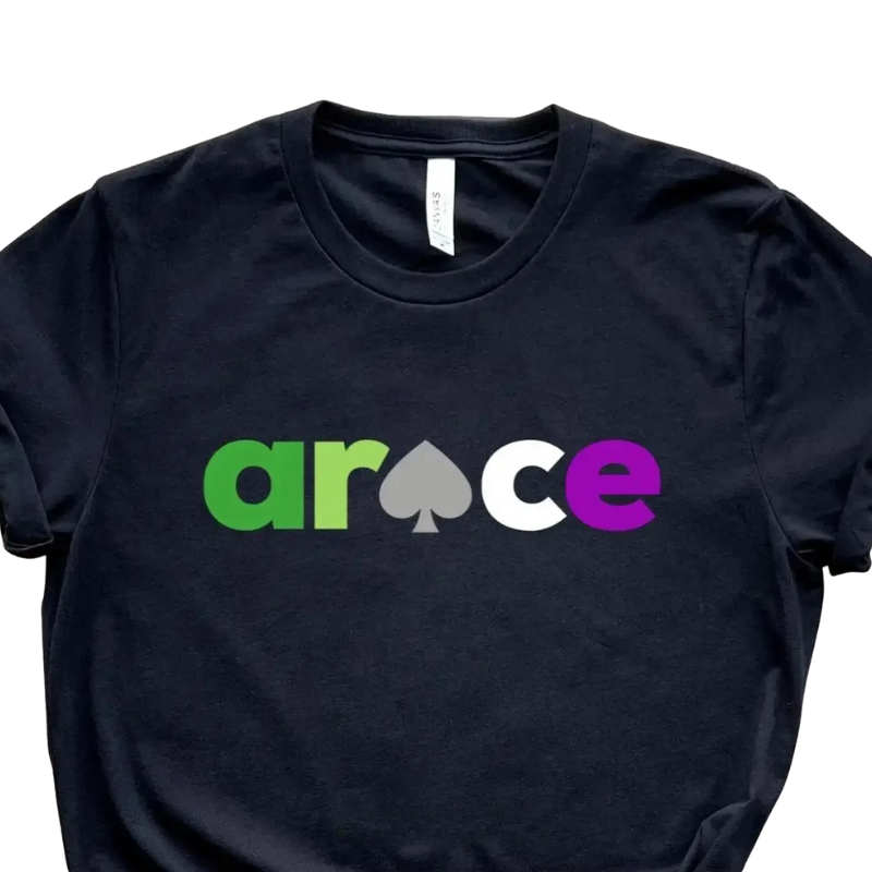 Ce t-shirt met en avant le mot aroace en jouant avec les couleurs emblématiques reconnues par les communautés aromantiques et asexuelles. Le symbole de pique gris s’insère au centre comme clin d’œil à la culture ace. Une façon simple et joyeuse d’exprimer son identité ou son soutien, sans jamais s’expliquer ou se justifier.