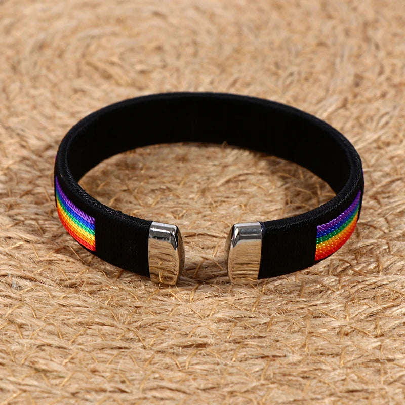 Un bracelet pensé pour afficher votre identité sans détour. Son tissage arc-en-ciel capté par un fond noir met en lumière vos couleurs avec intensité. Un accessoire simple, direct et puissant, créé pour accompagner chaque geste de votre quotidien avec fierté.